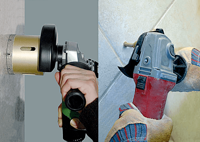Алмазные коронки по керамограниту (кольцевые сверла) для сухого сверления, выпускаются с хвостовиком М14 для использования с угловой шлифмашиной, с максимальной частотой вращения до 11000 об/мин, обеспечивают значительную скорость сверления и имеют значительно больший срок службы по сравнению с аналогичными инструментами, используемыми при мокром сверлении.